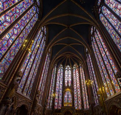 Al final del siglo XIII, se llega a prescindir de los muros, como en la Sainte-Chapelle de París, lo que conlleva a un trazado muy regular de las armaduras de las vidrieras. La novedad más importante es el fondo en rojo y azul entrecruzados que le da una particular luminosidad púrpura al interior.