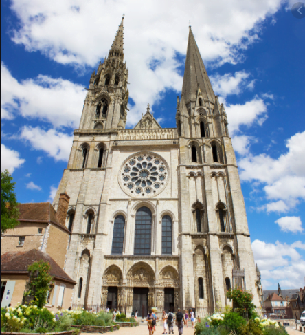 La catedral de Chartres se edifica sobre la anterior, románica, que tras un incendio a fines del siglo XII sólo conserva la portada occidental del crucero y parte de los campanarios. Es la primera catedral que se libera de la galería superior para desplegar la alternativa de los pilares y columnas, sustituyéndolas por haces de columnillas que se abren de un modo orgánico para distribuirse en las bóvedas. El conjunto es de una tremenda unidad vertical que induce mirar al cielo.