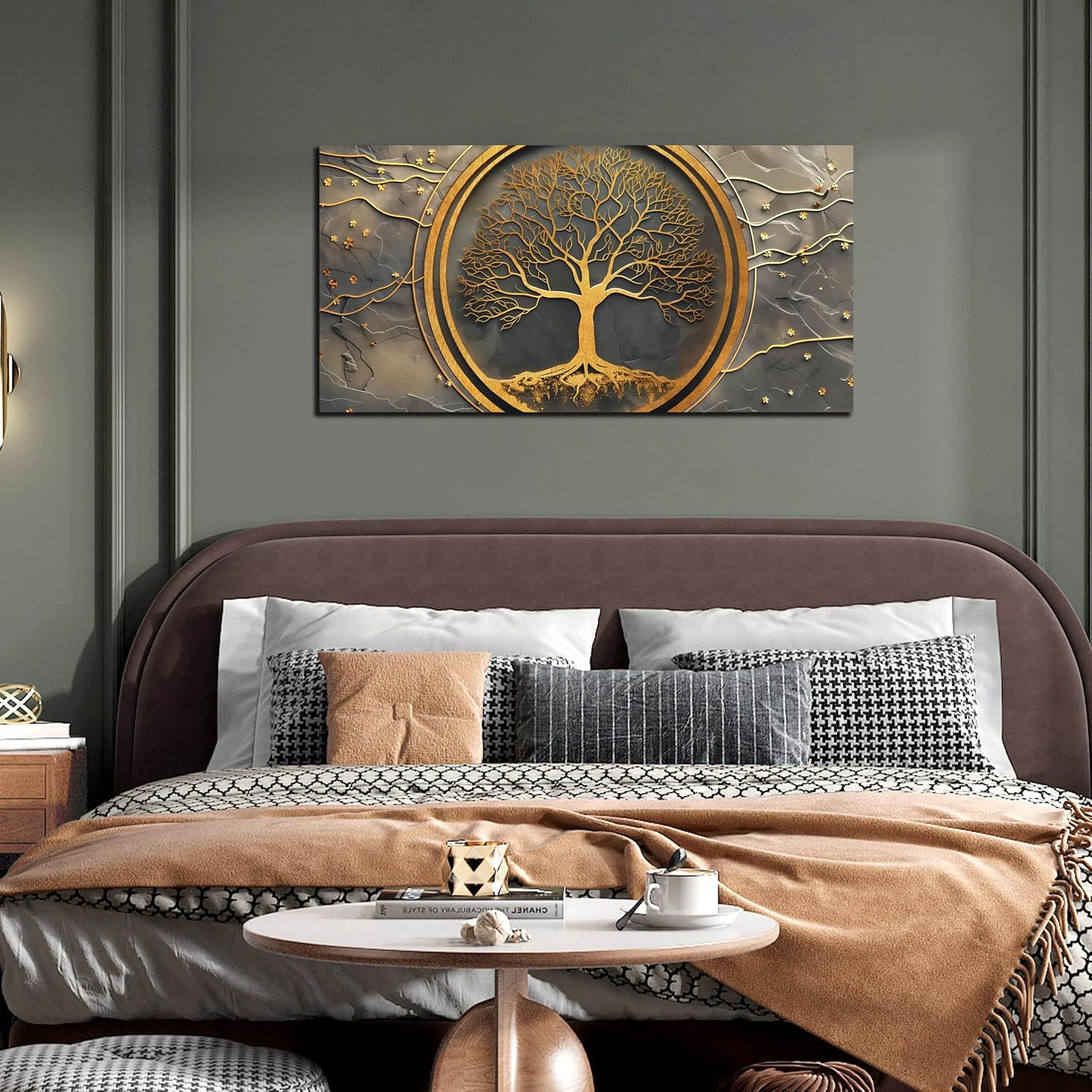 aburaeart Trees Canvas Wall Art for Living Room – Gold Wall Art for Office – Canvas Art Wall Decor for Dining Room Size 20″ x 40″