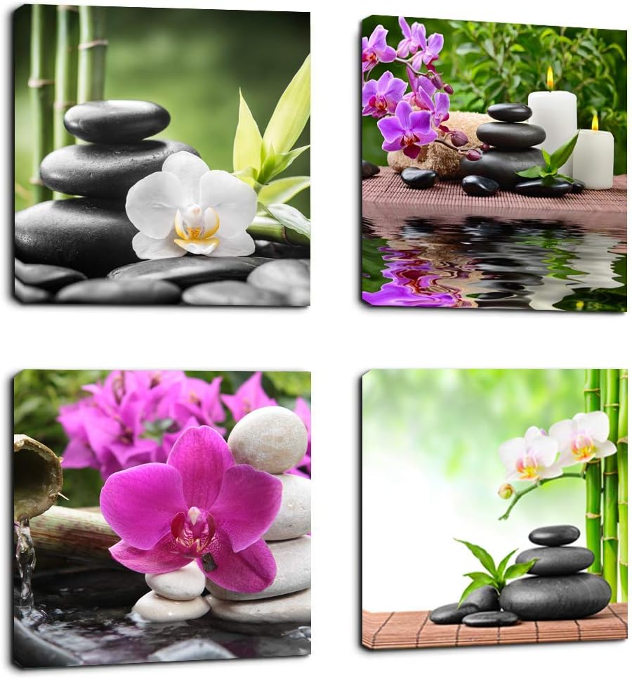 Wall Art Zen Canvas Painting Canvas Prints 4 Panels Canvas Art Ready to Hang – Contemporary Pictures Modern Artwork for Bedroom Living Room Bathroom Decoration