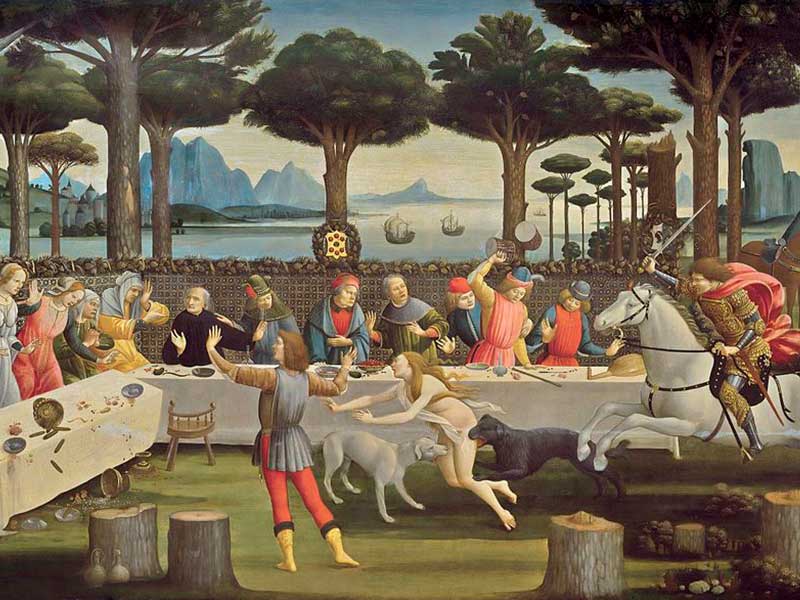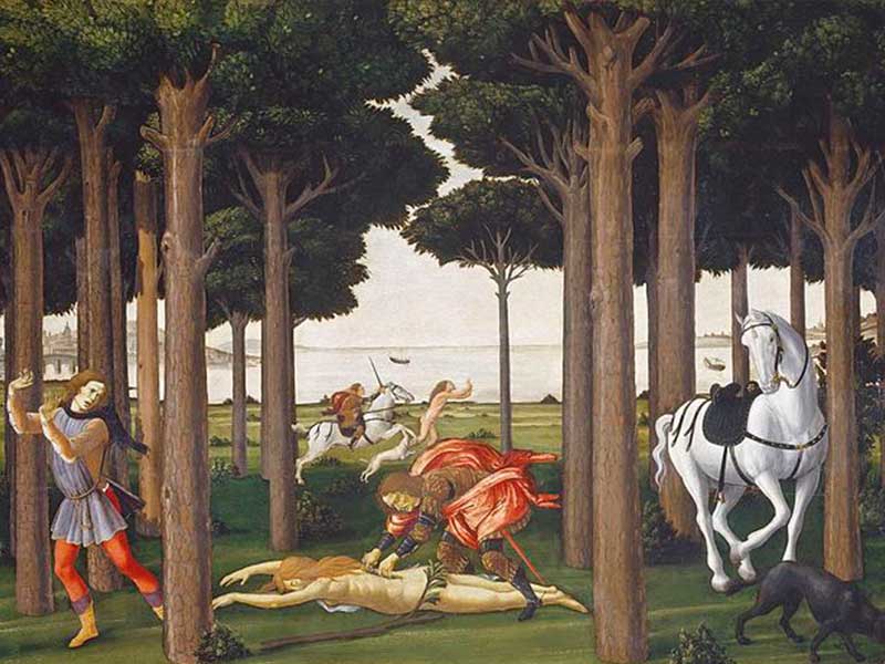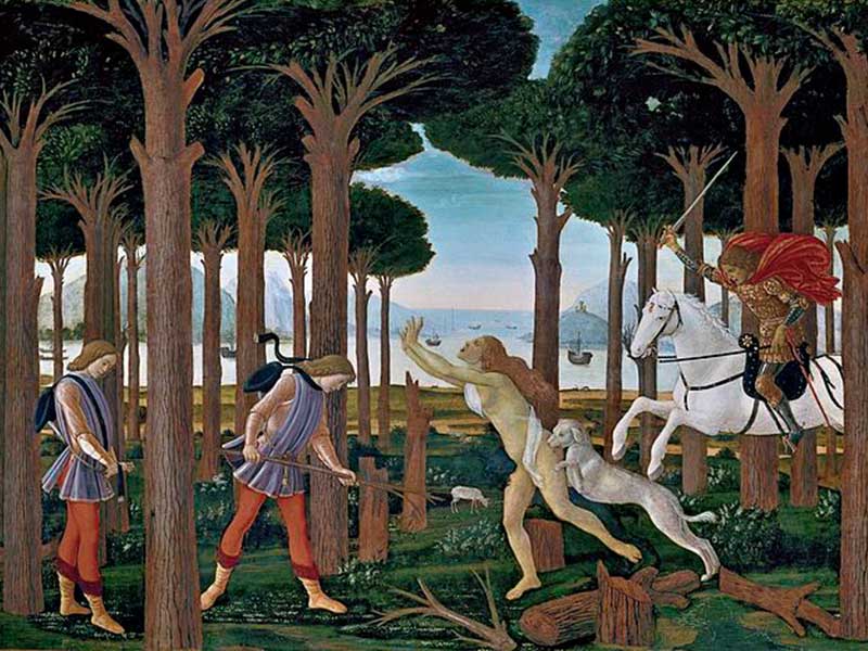 En la última generación del siglo destaca la figura estelar de Sandro Boticelli. Su dibujo eléctrico, recorrido por trazos nerviosos, el movimiento que agita todas sus formas-desde la cola del caballo al galope hasta las capas de los jinetes y las cabelleras de sus Venus, así como la tristeza que se asoma a todos los rostros que pinta son a un tiempo expresión del talante del pintor y de la melancolía que invade la vida florentina de fin de siglo, cuando se tiene conciencia de la inferioridad política y militar de las viejas repúblicas frente a los nuevos Estados nacionales que se están configurando en varias naciones europeas (España, Francia, Inglaterra). Por otra parte, sus paisajes primaverales y la glorificación del cuerpo humano desnudo culminan los temas del Quattrocento, como puede comprobarse en El Nacimiento de Venus, Alegoría de la primavera, La Calumnia o las tablas de la historia de Mastagio degli Honesti.