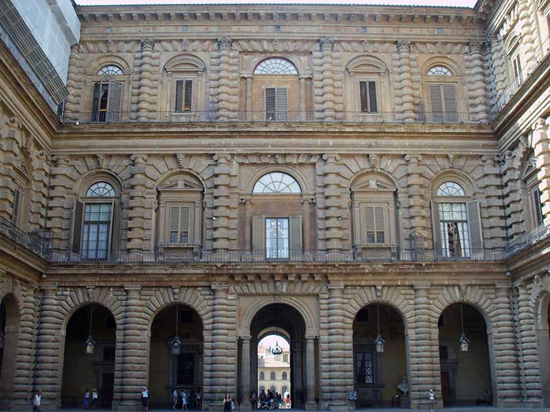 A Brunelleschi se debe también el modelo de palacio típicamente renacentista. En el Palacio Pitti la carencia de torre defensiva lo integra en la arquitectura urbana, y el tratamiento de los paramentos con sillares almohadillados le da un aspecto inconfundible de solidez. En los palacios el predominio de la línea horizontal será absoluto.