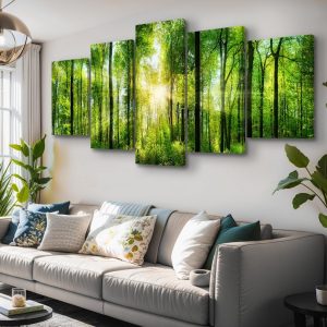 5 Piece Forest Wall Art – Nature Wall Decor Canvas Artwork Forest Painting,Morning Sunrise Green Trees Landscape Nature Decor for Bedroom Living Room Home Decorations Posters & Prints