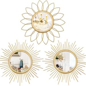 3 Pack Metal Mirrors for Wall Sunburst Wall Mirrors Home Décor Decorative Hanging Wall Art for Living Room Bedroom Entryway (Gold, Flower+Sunburst) Home & KitchenWatch the video