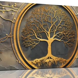 aburaeart Trees Canvas Wall Art for Living Room – Gold Wall Art for Office – Canvas Art Wall Decor for Dining Room Size 20″ x 40″ Posters & Prints